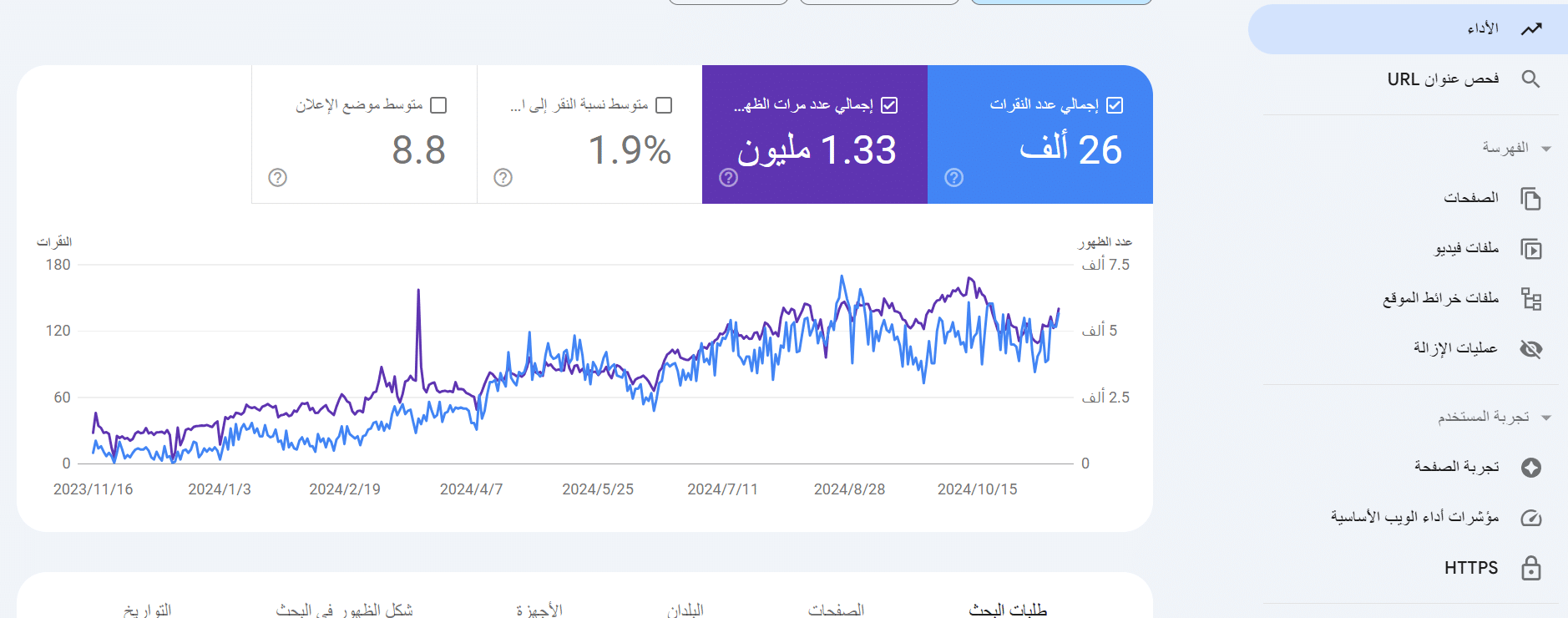 أداء الموقع